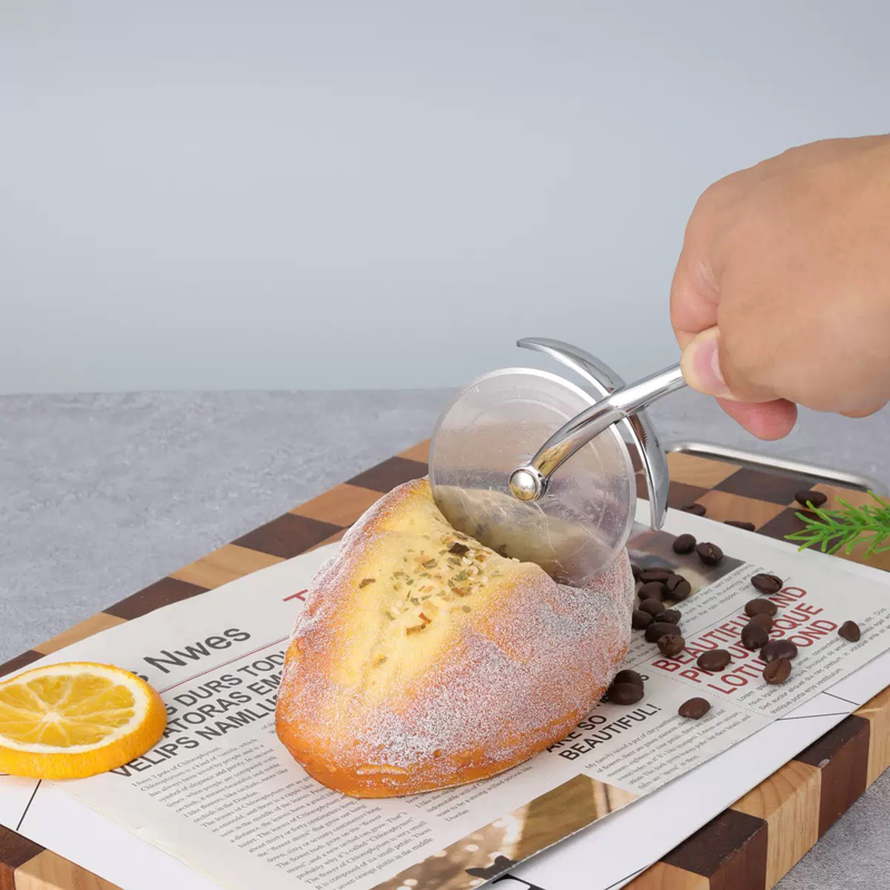 Bu ağır hizmet tipi çinko alaşımlı pizza tekerleği kesici, ev kullanımı için kullanışlı küçük bir alettir ve pizza yapımı için mükemmel bir arkadaştır. Pizza kesici küçük, hafif ve ucuzdur, bu da onu herkesin kullanmaya yetecek bir pizza kesici haline getirir.