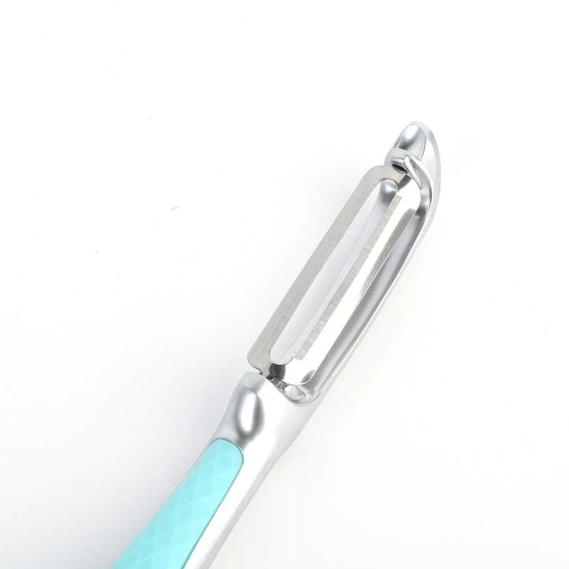 H542 firmamızın ürünlerinden biri olan düz saplı, düz bıçaklı soyucudur. Geleneksel düz saplı, çapraz bıçaklı tasarımlardan farklı olarak bu düz saplı düz bıçaklı soyucu, tüketicilere daha geniş pratik uygulamalar sunarak daha kapsamlı ve çok yönlü bir deneyim sunar. Açık mavi saplı bu mini çinko alaşımlı sebze soyucu, yemek ve mutfak aletlerinin geleneksel, donuk imajından uzaklaşan Macaroon tasarım serimizin bir parçasıdır. Bunların görselliğini ve kalite algısını artırır. uzun, ince saplı geleneksel soyma makinelerinin aksine, H542 daha sağlam bir sapa sahiptir. Macaroon serisinin narin, pastel renkleriyle eşleştirildiğinde, şık, metalik görünümü güzel bir şekilde tamamlar. Bu mini çinko alaşımlı sebze soyucu, diğer seçenekler arasında öne çıkmasını sağlayarak arzu edilirlik duygusu yayar.