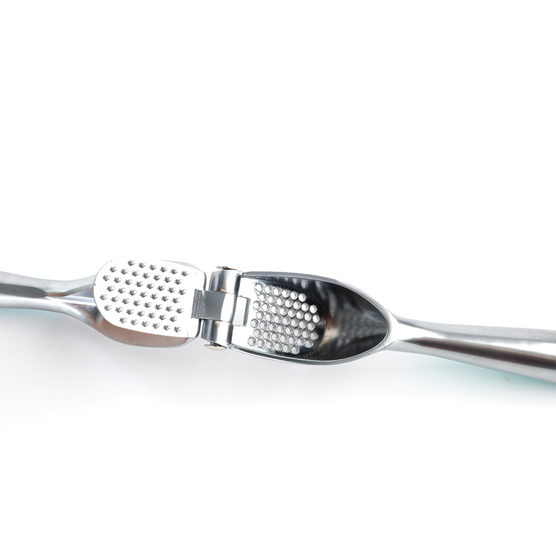 Sarımsak presi, yüksek kaliteli, çevre dostu çinko alaşımından yapılmıştır. Döküm ve ince cilalama işleminden sonra çeşitli renklerde elektrokaplama işlemine tabi tutulur. Her renk, kaymayı önleyecek şekilde tasarlanmış, eşleşen Acıbadem Kurabiyesi tarzı bir plastik sapla eşleştirilir. Bu, yalnızca ürünün genel kalitesini artırmakla kalmaz, aynı zamanda günlük kullanımda suya, yağa, soslara ve sirkeye maruz kaldığında bile parlak ve temiz kalmasını da sağlar. Yeni tasarımlı dayanıklı çinko alaşımlı sarımsak presinin sarımsağı serbest bırakmaya yönelik delikleri, yoğun bir şekilde dairesel bir düzende düzenlenmiştir. Presleme mekanizmasından gelen aşağı doğru basınç ve kaldıraç prensibi uygulandığında, sarımsak ezmesi, eşit ve ince bir kıvamda kolayca ve verimli bir şekilde çıkarılır ve pişirme verimliliği önemli ölçüde artar.