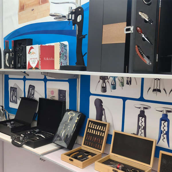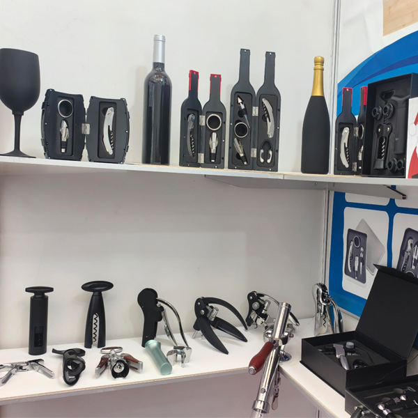 Ürün yelpazemiz çeşitli paslanmaz çelik ve alaşımlı şarap açacakları, tirbuşonlar, şampanya aletleri, sarımsak presleri, fındık krakerleri, konserve açacakları, soyucular, et yumuşatıcılar, kokteyl çalkalayıcılar, paslanmaz çelik matara ve ahşap veya PU'dan yapılmış çeşitli şarap takımlarının yanı sıra şarap kutularını da kapsar.